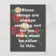 Este cartão postal floral tranquilizador apresenta a declaração "Já que as coisas sempre dão certo para mim, deve haver valor nisso." Esta simples declaração pode ajudar qualquer pessoa a superar os obstáculos e os momentos difíceis de suas vidas.