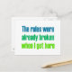 Precisa de uma desculpa para aqueles tempos em que é pego violando as regras? Aqui está: "As regras já estavam quebradas quando cheguei aqui." É o álibi perfeito!