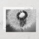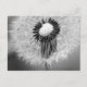 Um fim acima da fotografia preto e branco de sementes do dente-de-leão. Algumas sementes já fundiram afastado, quando as sementes restantes criarem um círculo no coxim branco do pino de uma cabeça de flor.