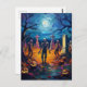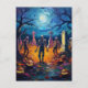 Esta pintura sombria de Halloween apresenta um grupo de ascensões mortas em um cemitério luonado, cercado por lentes brilhantes de jack-o-lanternas, árvores tortuosas e lápides intados. Com pinceladas giratórias e cores vívidas, este trabalho de arte assustador é perfeito para fãs de horror, decor de Halloween ou coletores de correio de caracol.