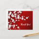 Ramo de flor de cerejeira branca e preta em um fundo preto brilhante com um texto de agradecimento.