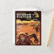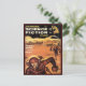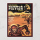 de uma revista vintage de ficção científica. Mostra dois astronautas em um planeta distante e estéril correndo de algum perigo