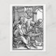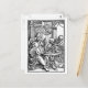 Cartões-postais astronômicos. Ilustração antiga de corte de madeira preto e branco de astrônomo numa mesa com esqueleto segurando crânio em um lado.