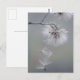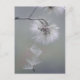 Cartão-postal inspirado por uma macro foto de uma pequena flor da floresta, talvez um hawkbit de outono (Scorzoneroides autumnalis). Agora, em setembro, o tempo de floração da pequena flor do outono terminou, tudo o que resta da flor é a bola branca e peluda de sementes. Uma a uma, as sementes leves estão deixando a planta-mãe, para começar uma nova vida sozinhas.