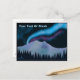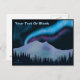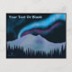 Luzes do norte roxas e azuis brilham sobre montanhas cobertas de neve em uma noite fria no Alasca. Adicione seu próprio texto.