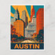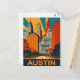 Cartão postal Austin. Arranha-céus em cores vibrantes. Cartaz viagem.