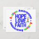 Cartão Postal Autismo Hope Love Faith