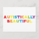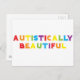 Design feito com amor pela Consciência Autista. As letras do arco-íris dizem o óbvio... que você ou um amado é 'Autisticamente Bonito'!
