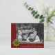 Personalize a frente e o verso deste cartão postal de Natal com fotografia divertida. Um design de cartão de Natal limpo, moderno, com foto da sua família, autoconvertido em preto e branco impressionante, preenchendo o rosto do cartão atrás de um quadro vermelho e dourado de Natal, realçado com um pinho e tosse sagrada. A banda inferior contém seus nomes e saudações de Natal em uma fonte dourada. Você pode personalizar o cartões de natal traseiro, seu endereço de retorno e seus nomes no script próximo à parte inferior com espaço para adicionar uma nota pessoal manuscrita.