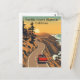 Faça uma viagem cênica ao longo da icônica autoestrada da Costa do Pacífico da Califórnia com este cartão postal de viagem ao estilo vintage. Apresentando estradas sinuosas ao longo de desfiladeiros dramáticos, um cruzeiro convertível, e o Oceano Pacífico ao pôr do sol, esta ilustração captura o espírito da derradeira viagem rodoviária americana. Um imperativo para colecionadores e amantes de viagem.