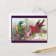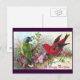 Um cartão vintage do final dos anos 1800 com dois pássaros em meio a flores coloridas lavandas.