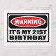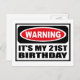 Aviso É meu cartão-postal ANIVERSÁRIO DE 21 ANOS, que você pode personalizar em www.WarningSignShirts.com e apresenta um sinal de aviso vermelho e preto e IT É meu ANIVERSÁRIO DE 21 ANOS em letras negros para avisar o mundo. Você também pode personalizar seu próprio sinal de aviso Cartão postal com o texto desejado.