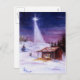 De uma pintura original a óleo de Brenda Thour da estrela do norte brilhando na cena do presépio no Natal em tons de azul, roxo e branco. Direitos autorais de Brenda Thour 2007.