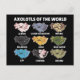 Diferentes tipos de axolóteis. Axolotl são animais de estimação para todos que amam a salamandra. Cores diferentes de axolóteis como o Melanoide Axolotl, Chimera Axolotl ou Enigma Axolotl.