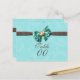 Este belo e plano "cartão postal de número de mesa" é ideal para o posicionamento de hóspedes e as modalidades de assentos para mesas no seu dia especial. DESIGN - Um arco de cetim aqua FAUX elegante, com um gemstone dourado e pérola, é colocado contra uma fita castanha rodeada por espirais florais suaves e um fundo azul turquesa. FAIXA DE CORRESPONDÊNCIA - Role para baixo para ver a faixa de cheios dos itens nesta faixa exclusiva. SOLICITAÇÕES PERSONALIZADAS - Para obter assistência, alterações de cor ou designs personalizados, entre em contato comigo em clientrequestrw@gmail.com