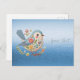 Lindo Cartão Postal Azul com Bordado Floral de Passarinho