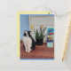 Cartão postal de gato de smoking fofo com flores bonitas. Criado a partir da minha fotografia original.