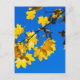 Folhas amarelas e galhos pretos de uma árvore de bordo contra o fundo do céu azul de outubro. Outono dourado. Jogo de cores amarelas e azuis