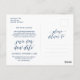 Este é o moderno design estético tematizado, em Marinho Azul, convite de Festa de casamento Reprogramado (adiado/adiado) cartão postal (Altere a data). É a maneira perfeita e elegante de fazer o convite reprogramar o anúncio aos seus amigos e familiares.