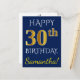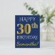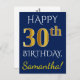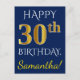 Cartão Postal Azul, Faux Dourada aniversário de 30 anos + Nome P