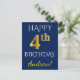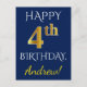 Cartão Postal Azul, Faux Dourado 4.º Aniversário + Nome Personal