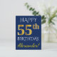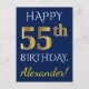 Cartão Postal Azul, Faux Dourado 55.º Aniversário + Nome Persona