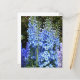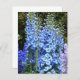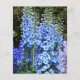 Flores de Delfinium azuis, cartão postal de fotografia de jardim. Linda pintura floral azul. Perfeito para ela, mãe, vovó.