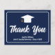 Este cartão-postal de graduação personalizado azul marinho e branco moderno apresenta agradecimentos manuscritos elegantes acima do nome da sua escola ou faculdade para a turma de 2025. Personalize com seu nome sob o chapéu de graduação para cartões de agradecimento de graduado personalizados.
