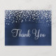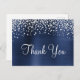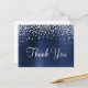 Crie seu próprio cartão postal de agradecimento com efeito ombre azul marinho escuro em folha de metal falsa e confete de diamante prateado.