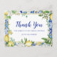 Cartão Postal Azulejo Mosaico Azul Floral Branco Limão Obrigado