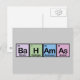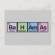 Presentes de excelente aqui para pessoas das Bahamas ou qualquer um que adora visitar estas lindas ilhas. A palavra Bahamas é feita dos elementos Bário, Hidrogênio, Amerício e Arsênio. Uma design de pessoas divertida e colorida para a química.