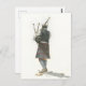 Cartão postal com uma pintura aquosa de um bagpiper em kilt de cheio caminhando pela praia. Trabalho de arte: Aquarela e grafite no lápis. Copyright Dominic A. White. Todos os direitos reservados.