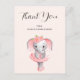 Cartão Postal Bailarina Elefante Fofa Rosa e Cinza Obrigada