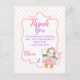 Este cartão postal de agradecimento é uma maneira perfeita de dizer obrigado aos convidados da sua festa. Pode ser usado para aniversários de crianças ou ocasiões de chá de bebê. Apresenta uma moldura decorativa rosa pálido com um pinguim bebê de desenho animado vestido como uma bailarina em um tutu rosa girando uma fita rosa. O fundo tem um padrão listrado rosa pálido. Pode ser personalizado alterando o texto e, em seguida, personalizado com um nome. Itens de festa correspondentes disponíveis na suziigifts.