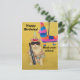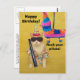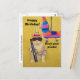Gatinho de Bubba em uma camisa havaiana, chapéu de festa e venda, com morcego e pinata. Cartão postal de aniversário personalizável.