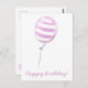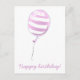 Cartão Postal Balão com risca rosa-branca - Aniversário de crian