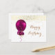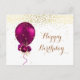 Cartão Postal de Balão de Aniversário Feliz com Floral Dourado e Fuchsia Brilhante.