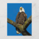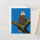 Uma águia-careca brilhante empoleirada num galho, apoiada por um céu azul vibrante