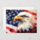 Cartão Postal Bald Eagle com bandeira dos Estados Unidos