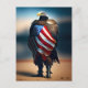 Cartão Postal Bald Eagle Vestindo Armor Segurando Bandeira Ameri