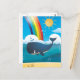 Baleia Arco-íris no profundo mar azul ensolarado.