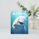 Cartão Postal Baleia Beluga Cartoon Azul Verde Oceano Ártico