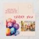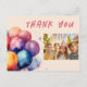 Balão Colorido Foto de Aniversário Infantil Cartão de Obrigado. Cartão de agradecimento de aniversário para a festa de aniversário das crianças. Este design vem com belos balões em diferentes cores com visual de aquarela. Personalize o cartão com o nome do seu filho, mensagem de agradecimento e foto.