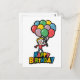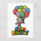 personagem engraçado segurando balões cartão Feliz Aniversário.