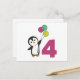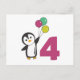 Cartão Postal Balões de Aniversário de Quatro Anos de Pinguim pa