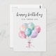 Cartão Postal Balões de Aquarela Pastel Feliz Aniversário Empres