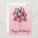 Cartão Postal Balões Elegantes Rosa Dourado e Prata de Aniversár