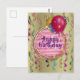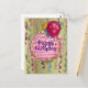 Celebre o dia especial da pessoa amada com este cartão de aniversário festivo! O fundo metálico dourado é adornado com serpentinas coloridas, criando uma atmosfera alegre. O centro do cartão é um círculo emoldurado metálico dourado e pinceladas de tinta rosa com "Feliz Aniversário" escrito em elegante letra cursiva roxa. Três balões em rosa, roxo e azul flutuam no canto superior direito, aumentando o clima de celebração. Personalize este cartão para torná-lo uma surpresa de aniversário perfeita!