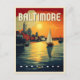 Descubra o encanto de Baltimore com este cartão-postal viagem. Possuindo uma ousada e colorida paisagem urbana, marcos icônicos, um céu beijado ao sol, e um porto movimentado, este cartão postal captura a essência da cidade.