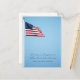 Uma imagem da bandeira americana a adejar suavemente numa brisa num dia de céu azul límpido. Num tipo de letra azul, as palavras leem: "Para que a prossecução da felicidade seja cumprida, todos devem estar livres de restrições impostas por outros." Imagem Copyright ©Kimberly J Tilley.